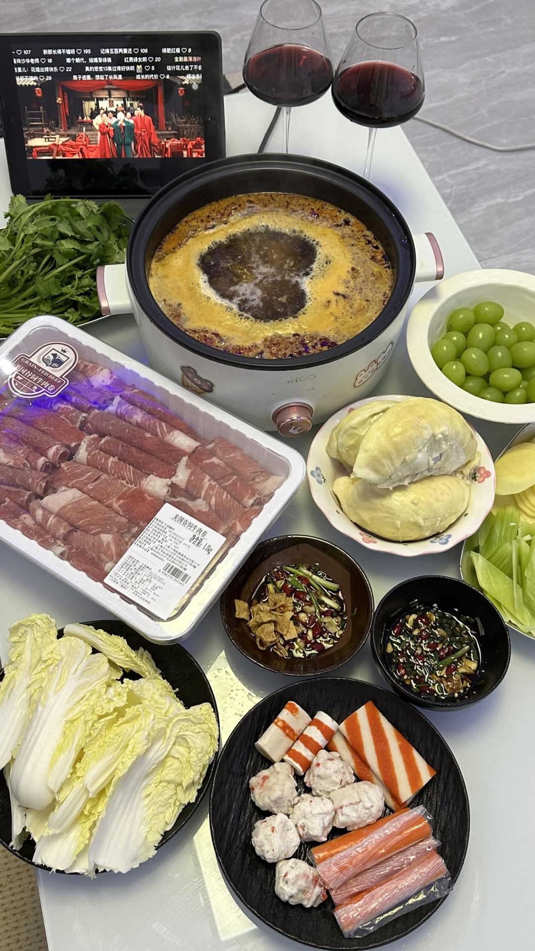 和家人在家刷猪肚鸡火锅