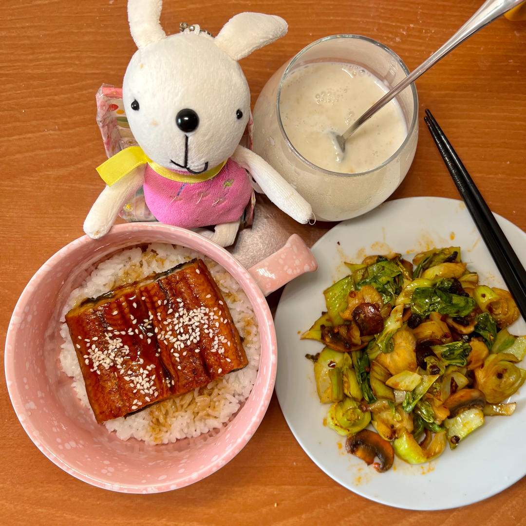 鳗鱼饭&口蘑炒青菜&花生奶糊