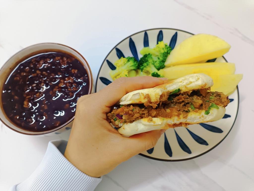 牛肉夹馍 黑米燕麦粥