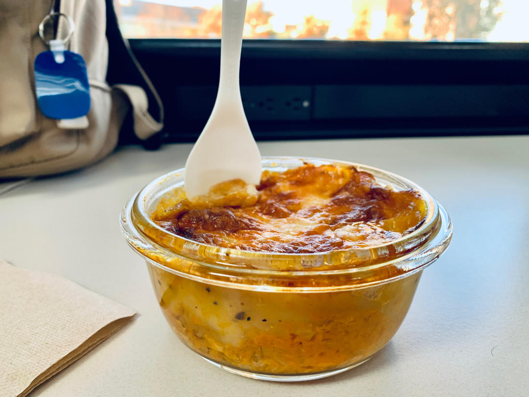 表面撒了一层芝士(希望热量不要太高),下次吃东西要记得吹吹,吃完烫的肚子不舒服😭