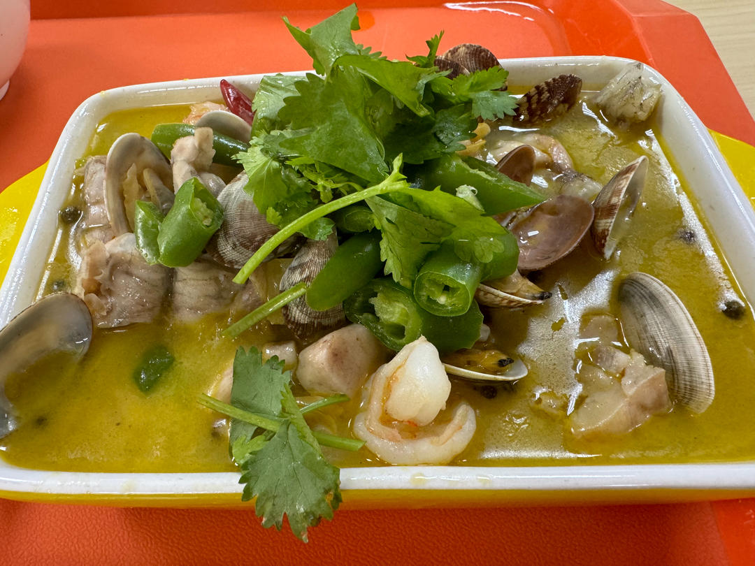 食堂的金汤麻椒牛蛙,好吃下饭。14元一份,太感动了~