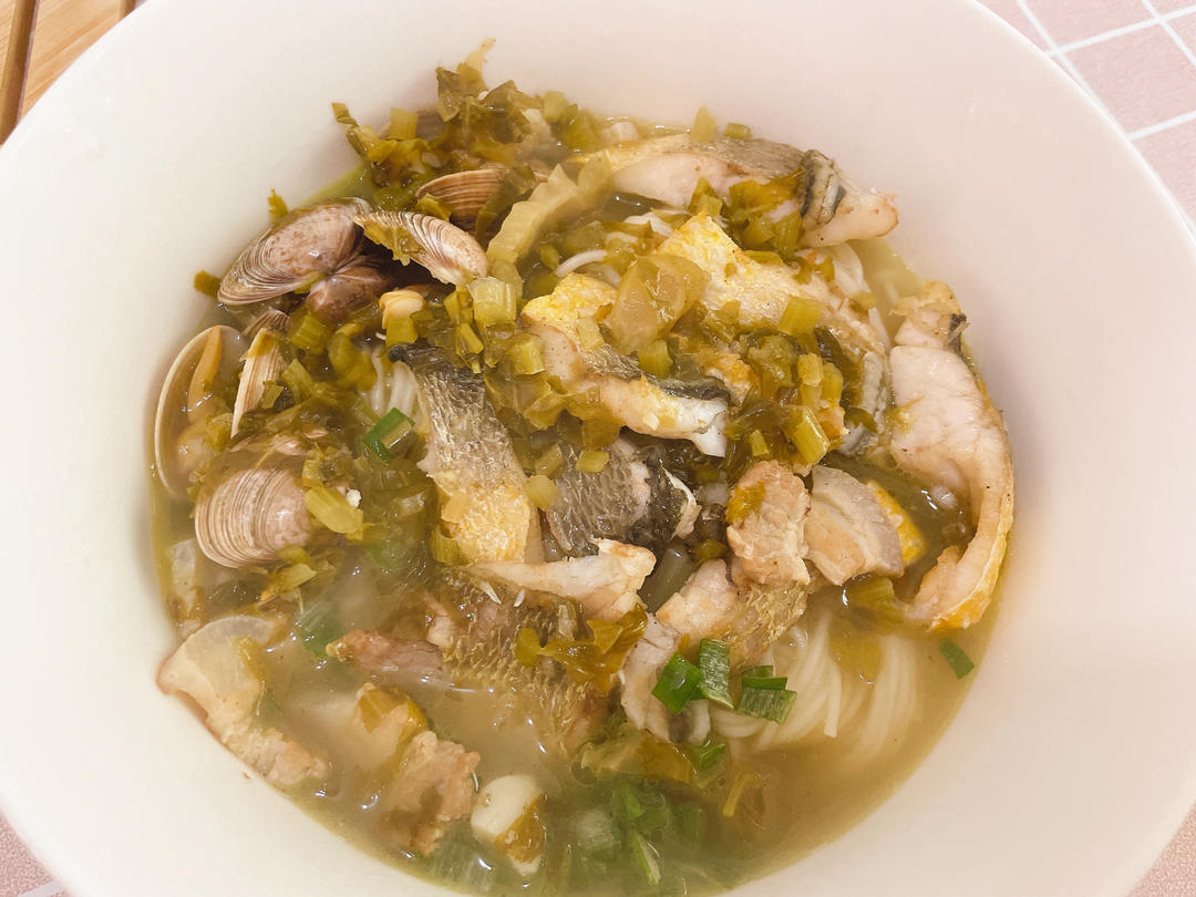 忙活几小时的黄鱼海鲜面
