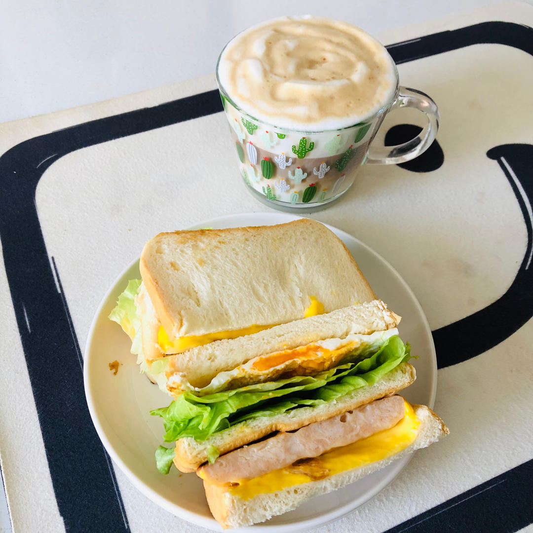 热拿铁。鸡排三明治