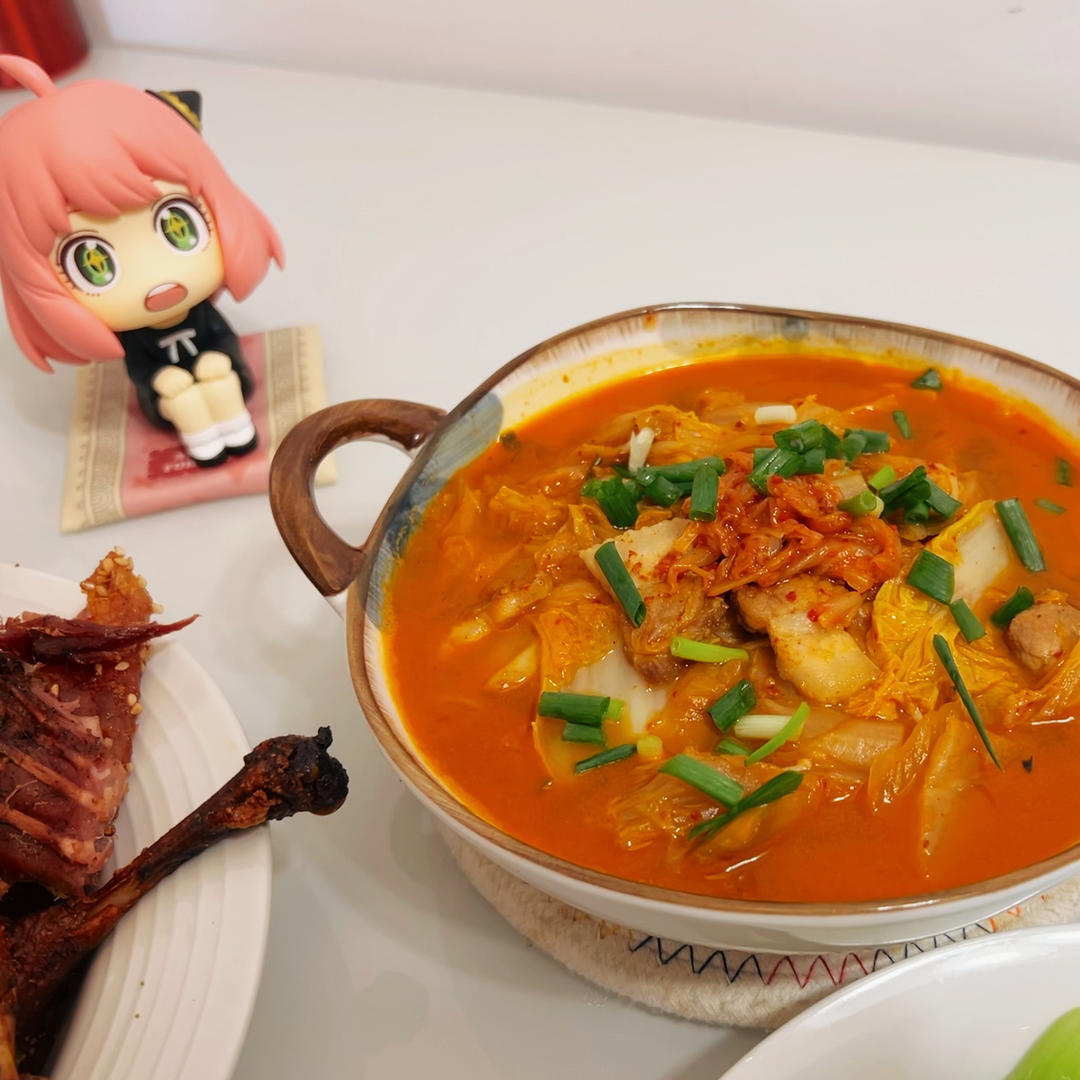 五花肉泡菜汤、霜打小青菜&手撕烤鸭