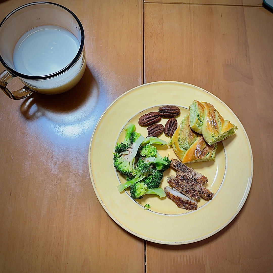 抹茶奶酥花环➕黑椒鸡腿➕西兰花🥦➕奶香碧根果