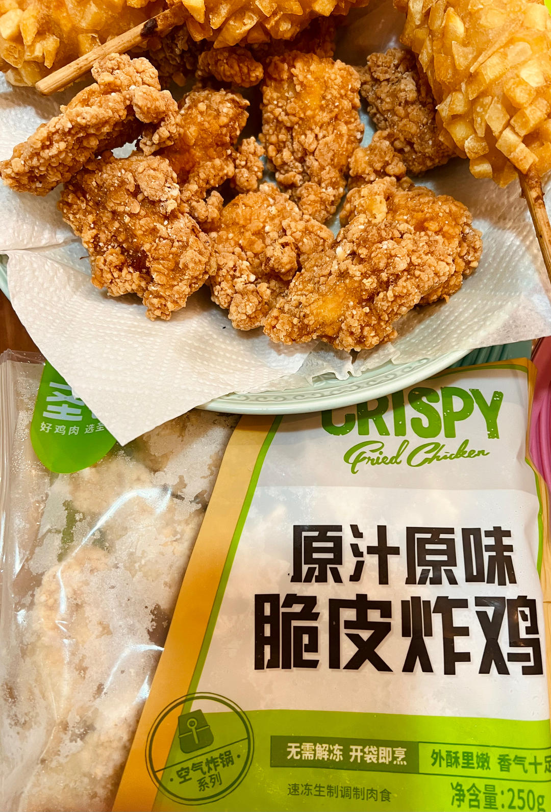 配上贵州蘸水辣椒面,真是又香又方便。开袋即炸,无需解冻,美味无需等待。