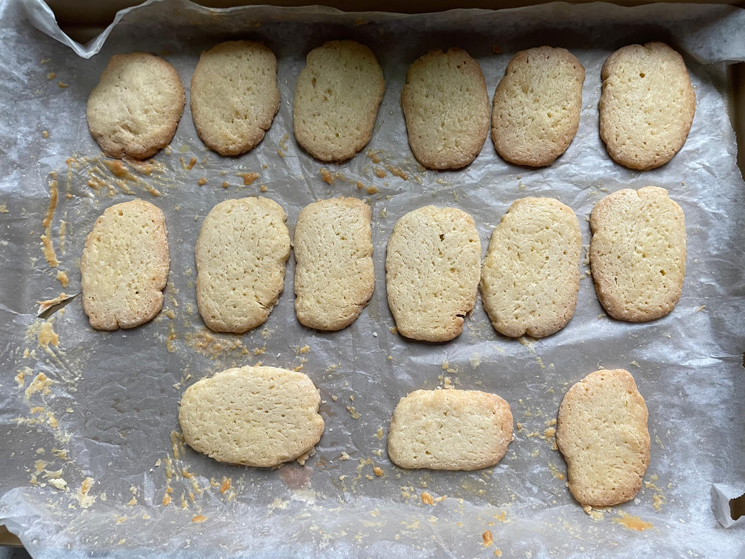 第一次做曲奇不应该选择在冬天做,黄油软化了,但南方的冬天操作,一会儿就硬了,根本挤不出形状,只能冷藏切片了。