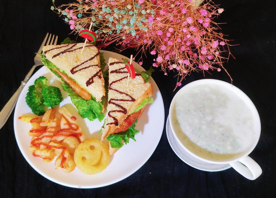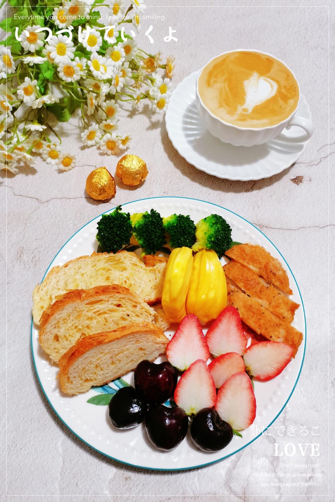 可颂 煎鸡排 西兰花🥦 菠萝蜜 草莓🍓 车厘子🍒 黑芝麻丸 拿铁咖啡...