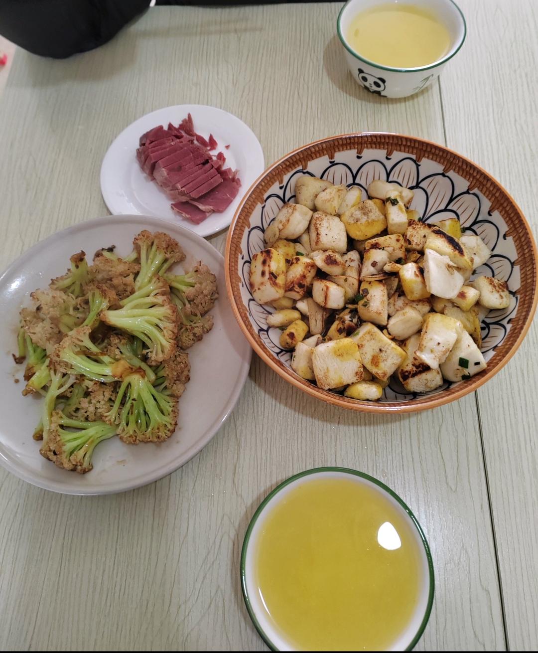 炒馒头,炒花菜,卤牛肉