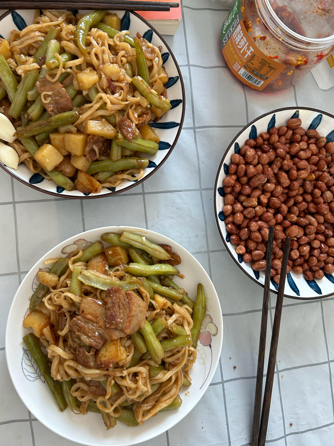耐斯,用的豆角是白不老,半个土豆,2块钱面条,两个人吃的饱饱的,在菜谱的基础上先放豆角炒1分钟加入土豆再炒一两分钟后加水...