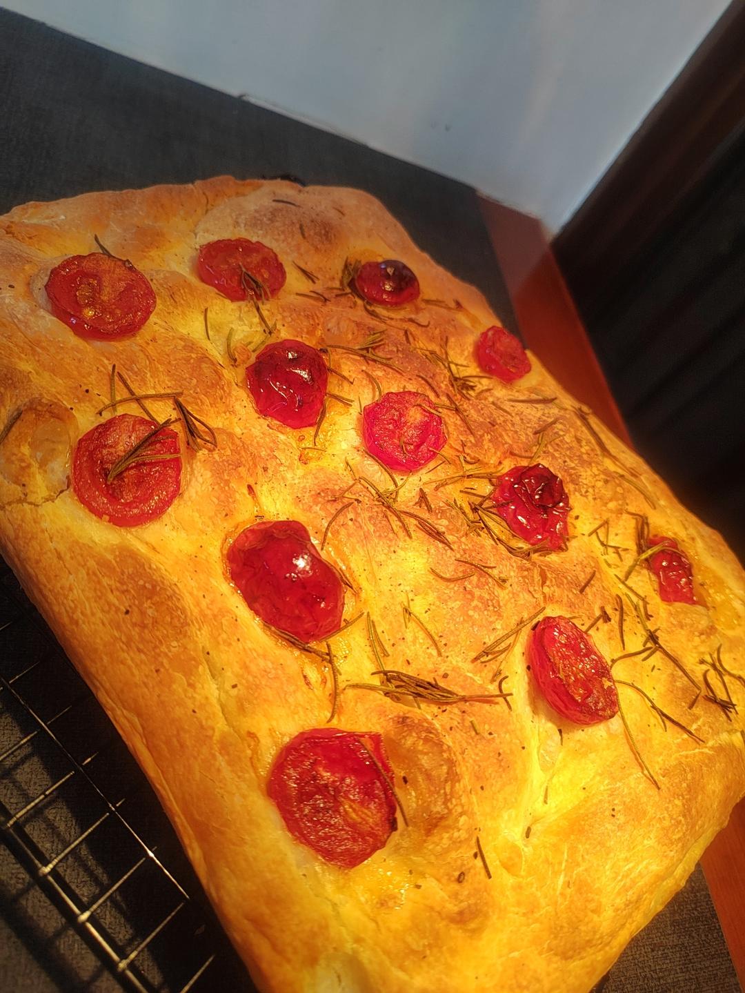 1/3的量做了扁扁的佛卡夏,天然酵种用等量老面代替,220℃烤了23分钟,出炉嘎嘣脆,小番...