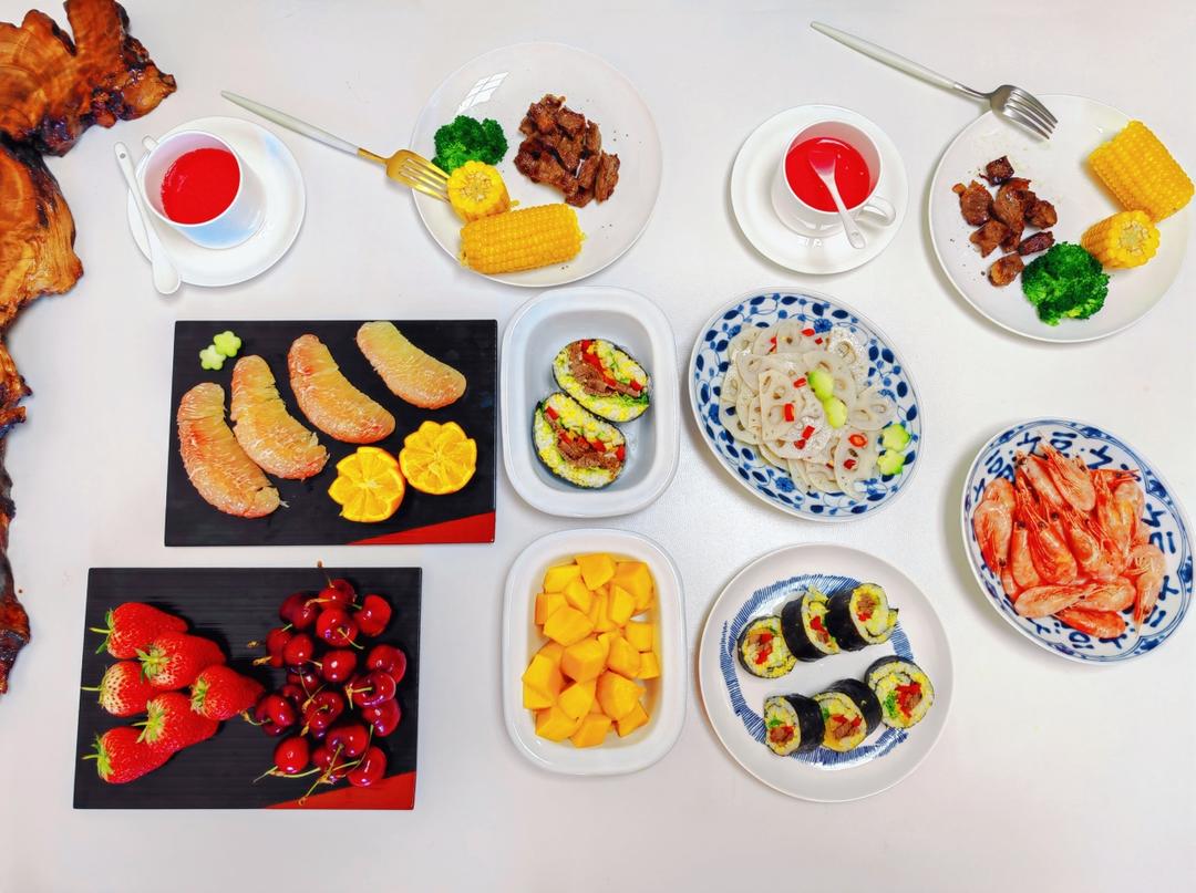 搭配溏心蛋草莓和车厘子