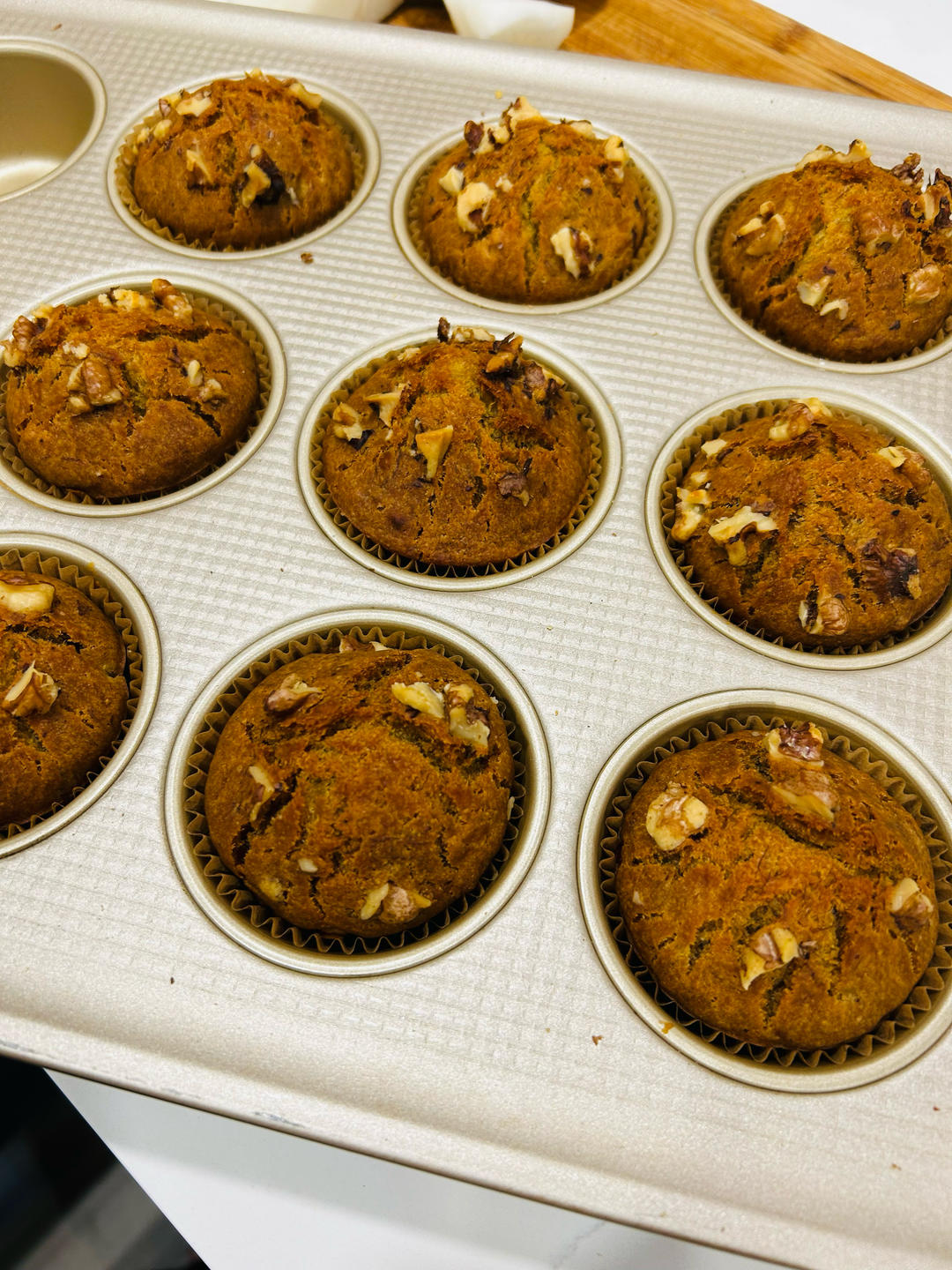 因为宝宝对鸡蛋牛奶过敏,母乳喂养的我只能忌口!已经好久没吃蛋糕了! 这个配方好吃的! 松软就像蛋糕一样。我上面还放了核桃...