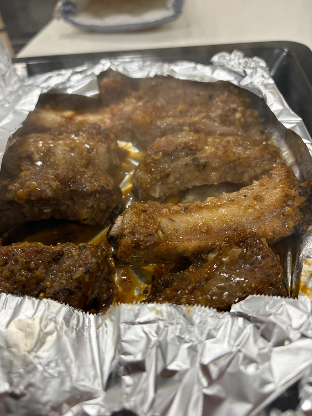 没有刷蜂蜜,烤完焖一会儿,很好吃,蒜香,甜甜的。