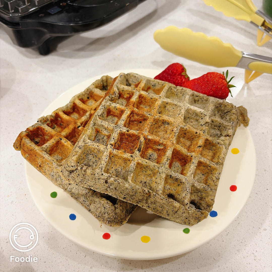 提前一晚做好面糊,早上华夫饼机用起来,香软可口,加了黑芝麻粉,更香啦~可惜漫漫今天更想吃草莓和我的燕麦粥,给老爸吃了。#...