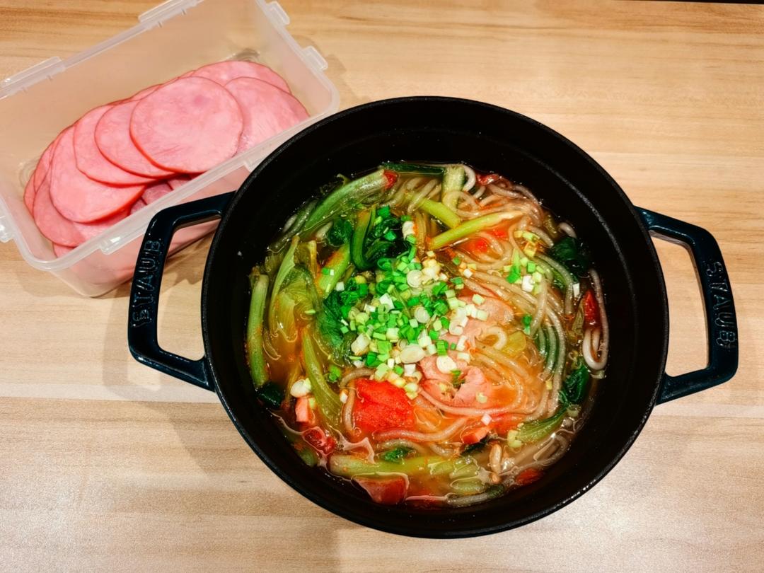 番茄土豆粉🍅🥔烟薰火腿肠,孩子的晚餐!