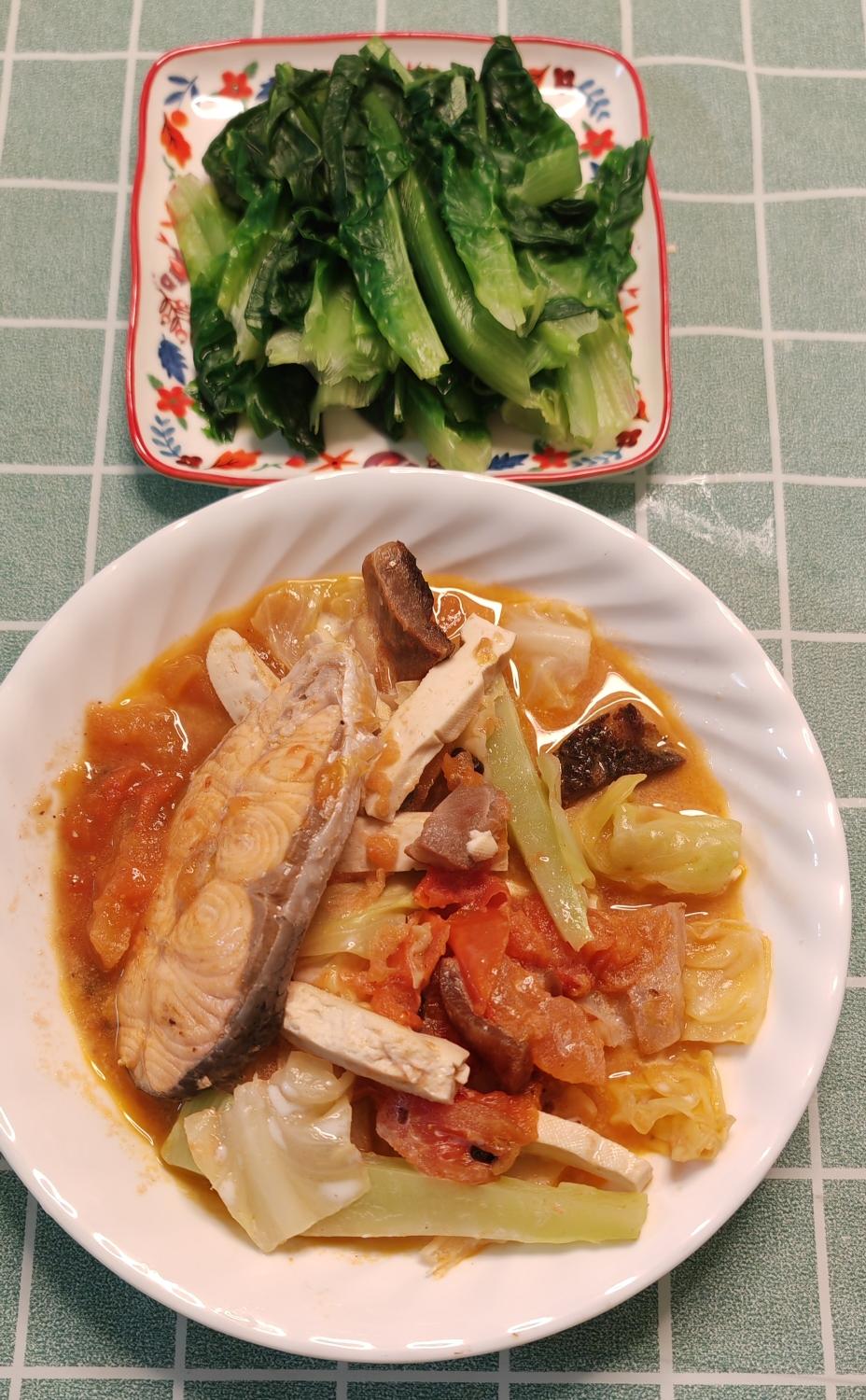清炒菠菜配西红柿