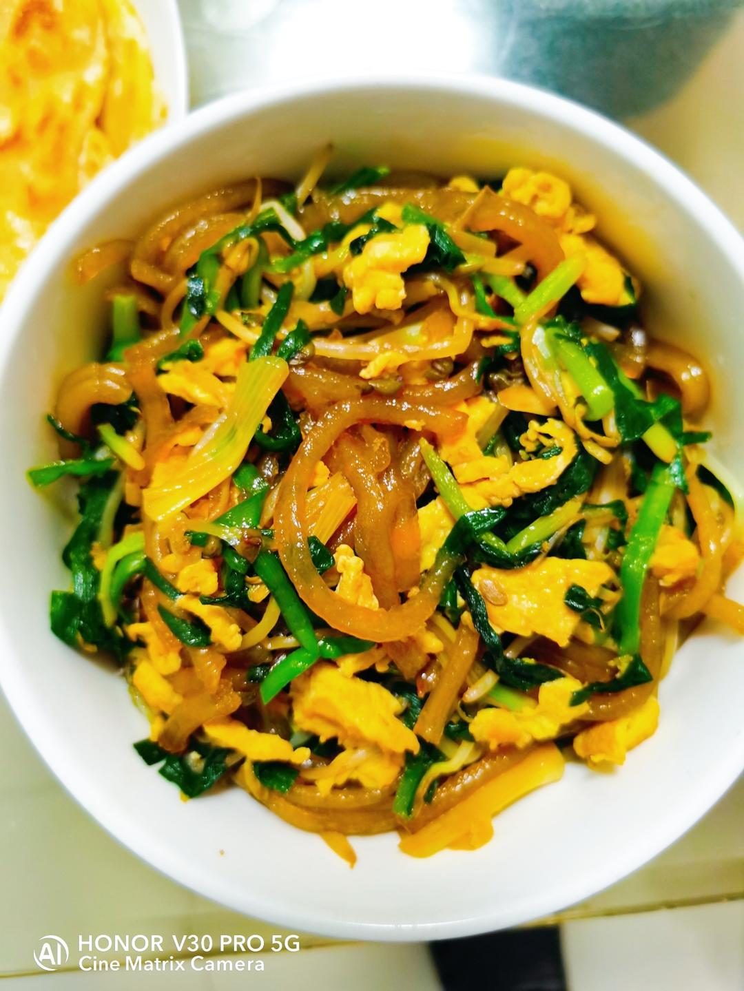 今天是炒黄粿!属于是冰箱里有啥做啥了,没买菜,用了半块黄粿,昨天买的鸡毛菜,还有冷冻的鸡...
