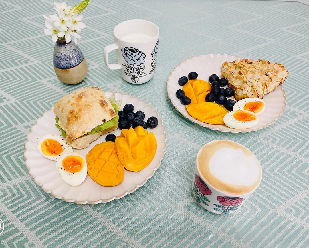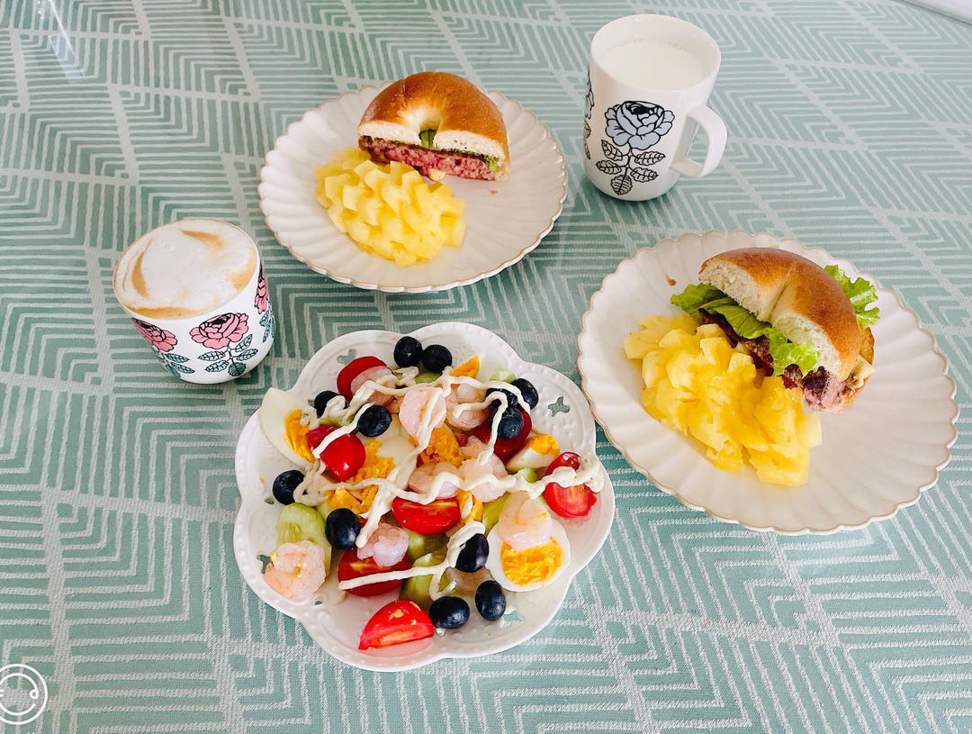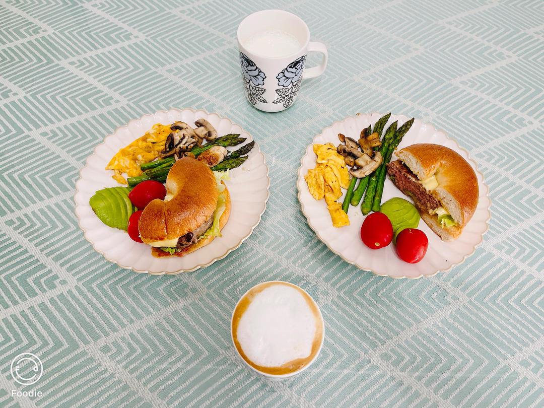 早餐:牛肉汉堡、杏仁可颂