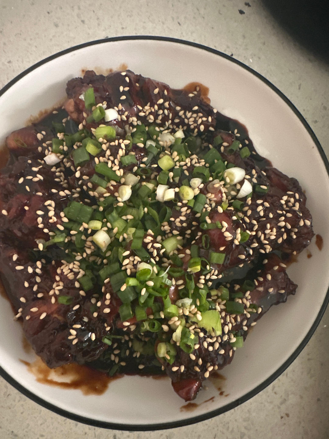 料汁怕不够,多加了酱油和生抽和耗油,结果黑了,还是不应该加的