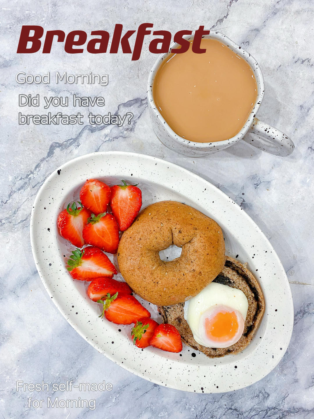 早:☕奶咖🍓🍒🍳+🥯黑芝麻全麦贝果