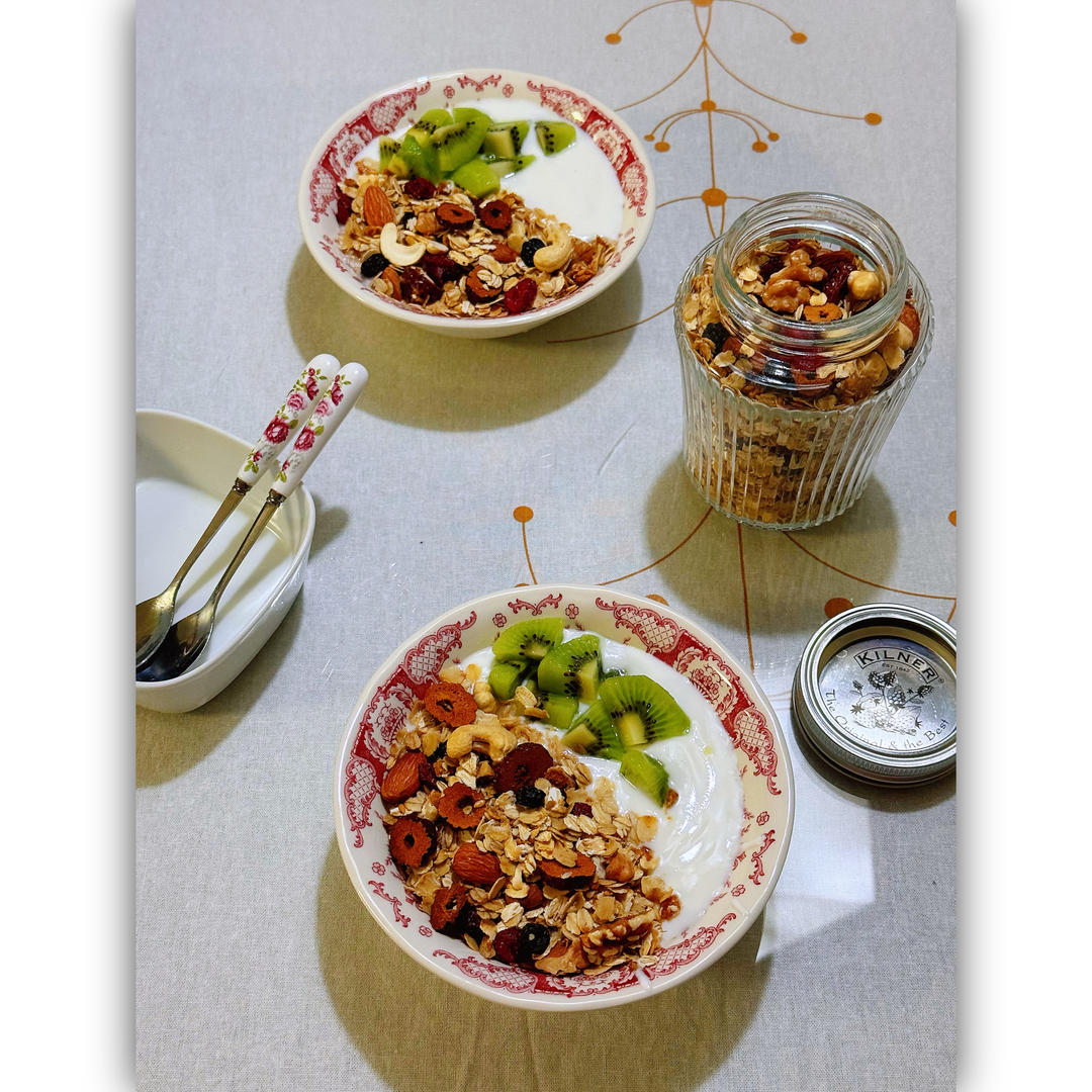 烤麦片搭配自制酸奶