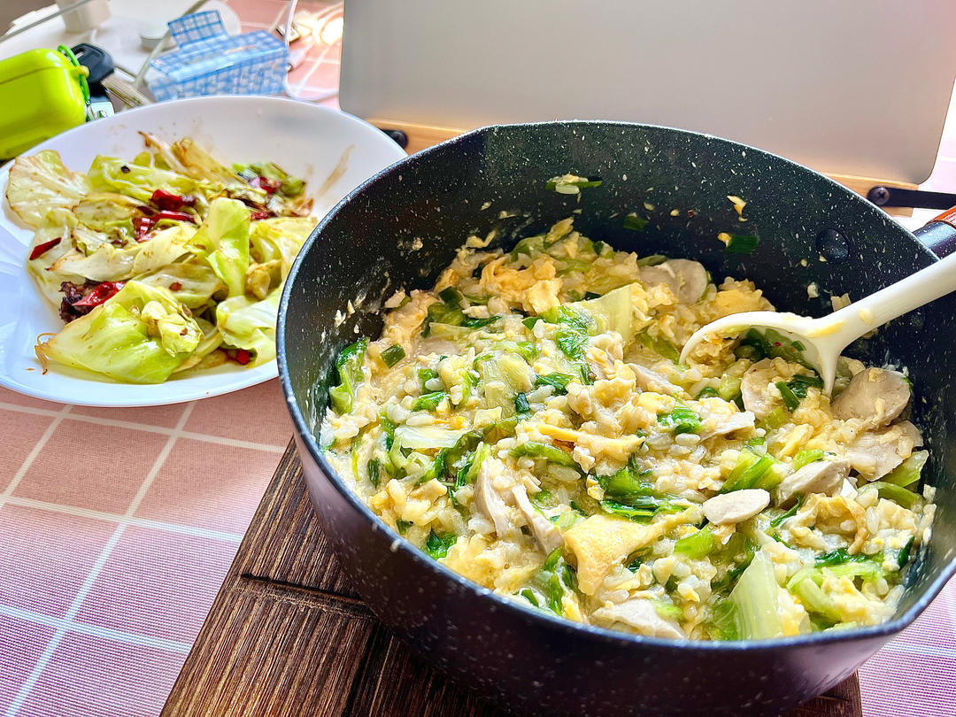 手撕包菜&滑蛋贡丸烩饭