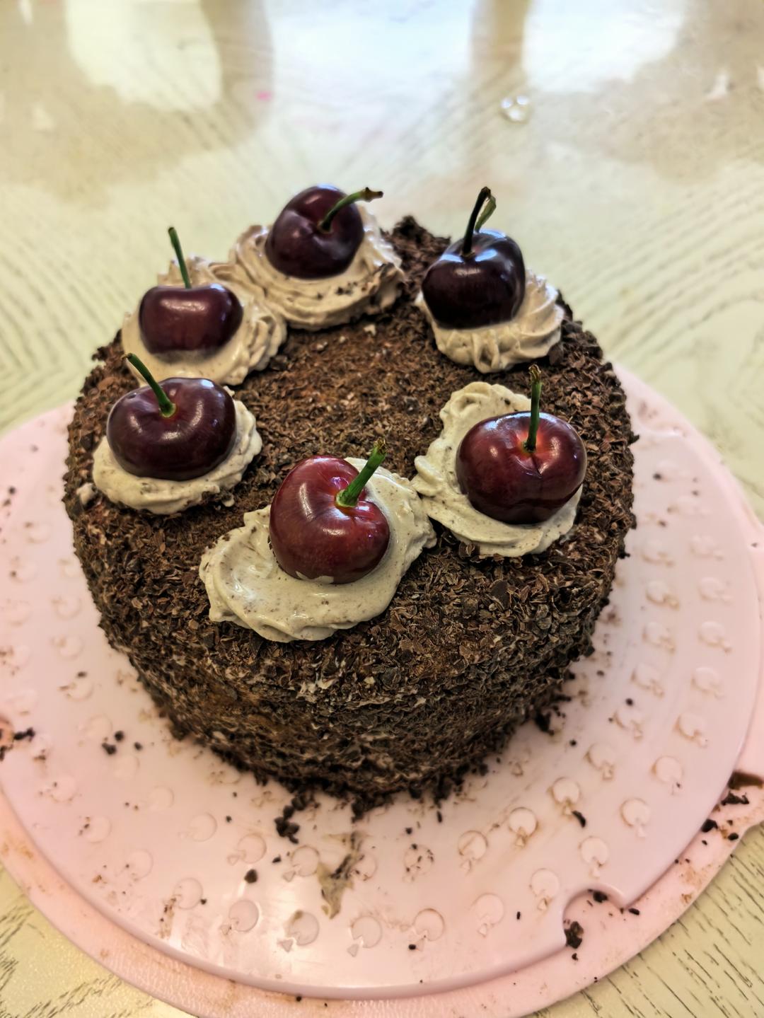 很不错的方子,不过樱桃朗姆酒的味道好浓啊!腌渍了十几个小时,下次试试腌更少时间。巧克力奶油...