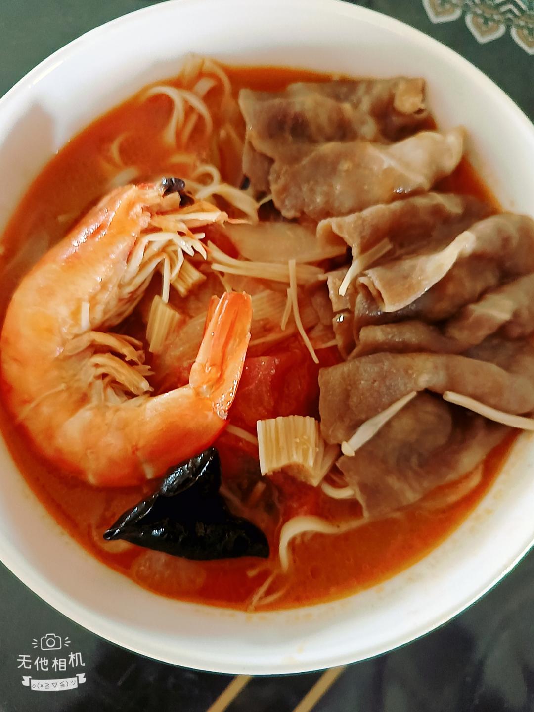 煮的八豆面,汤底很好吃