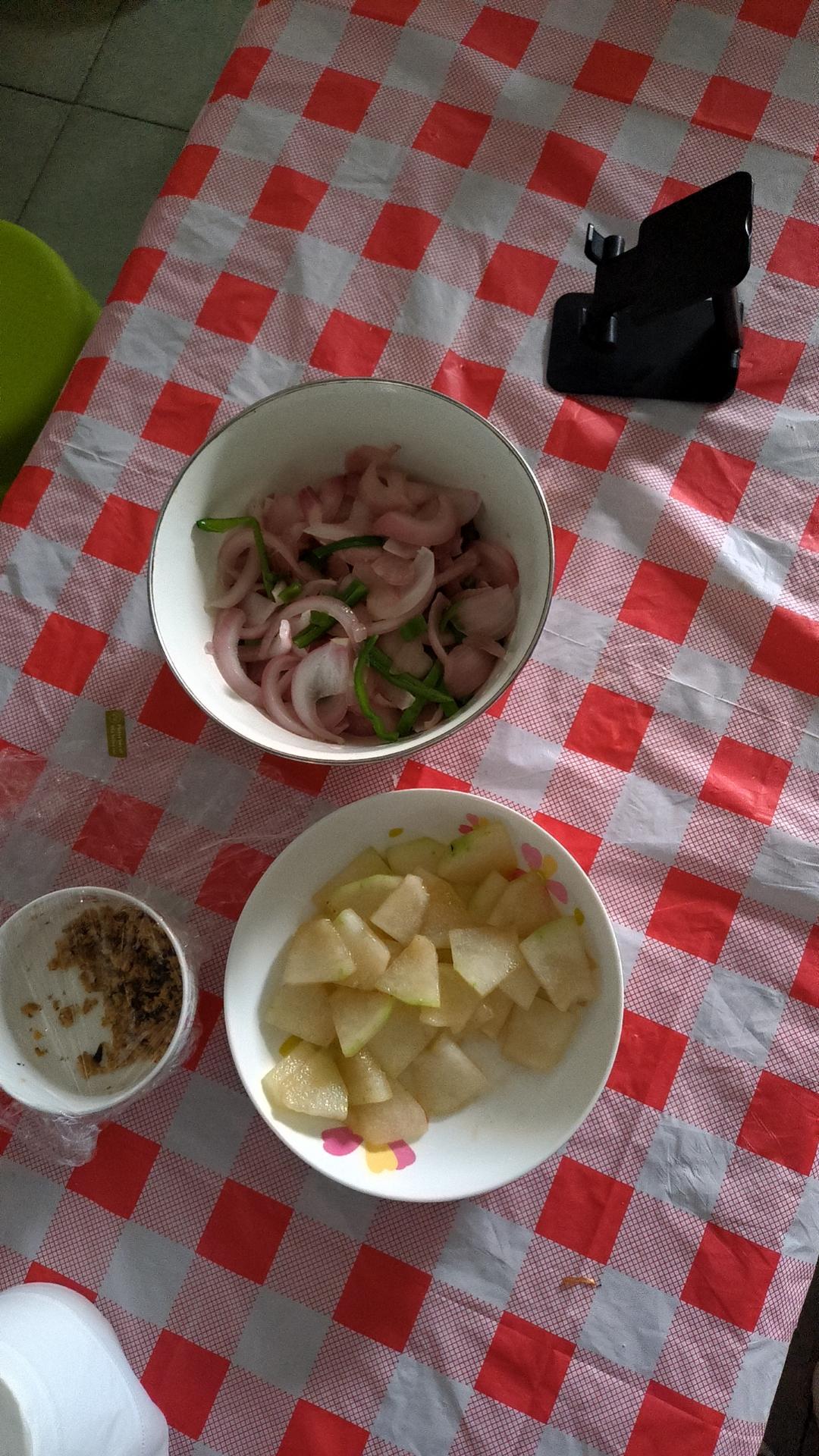 纯纯清炒,油热下冬瓜,炒一会放点水,继续炒软。