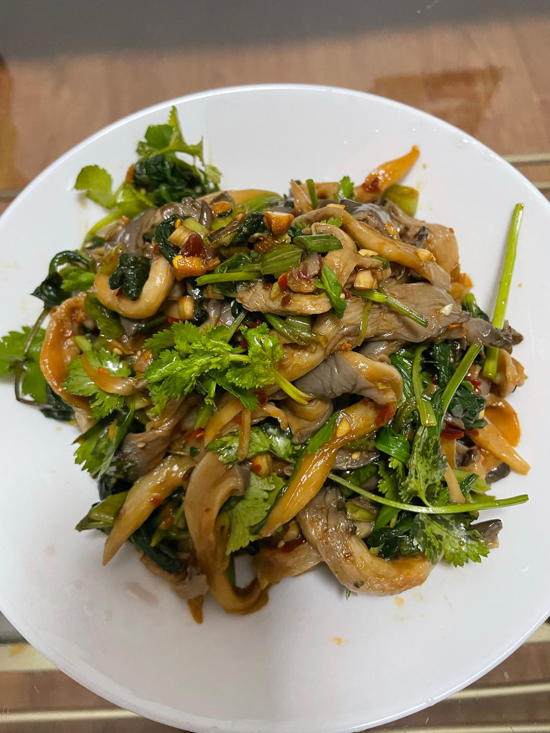 凉拌平菇菠菜,韭菜盒子。
