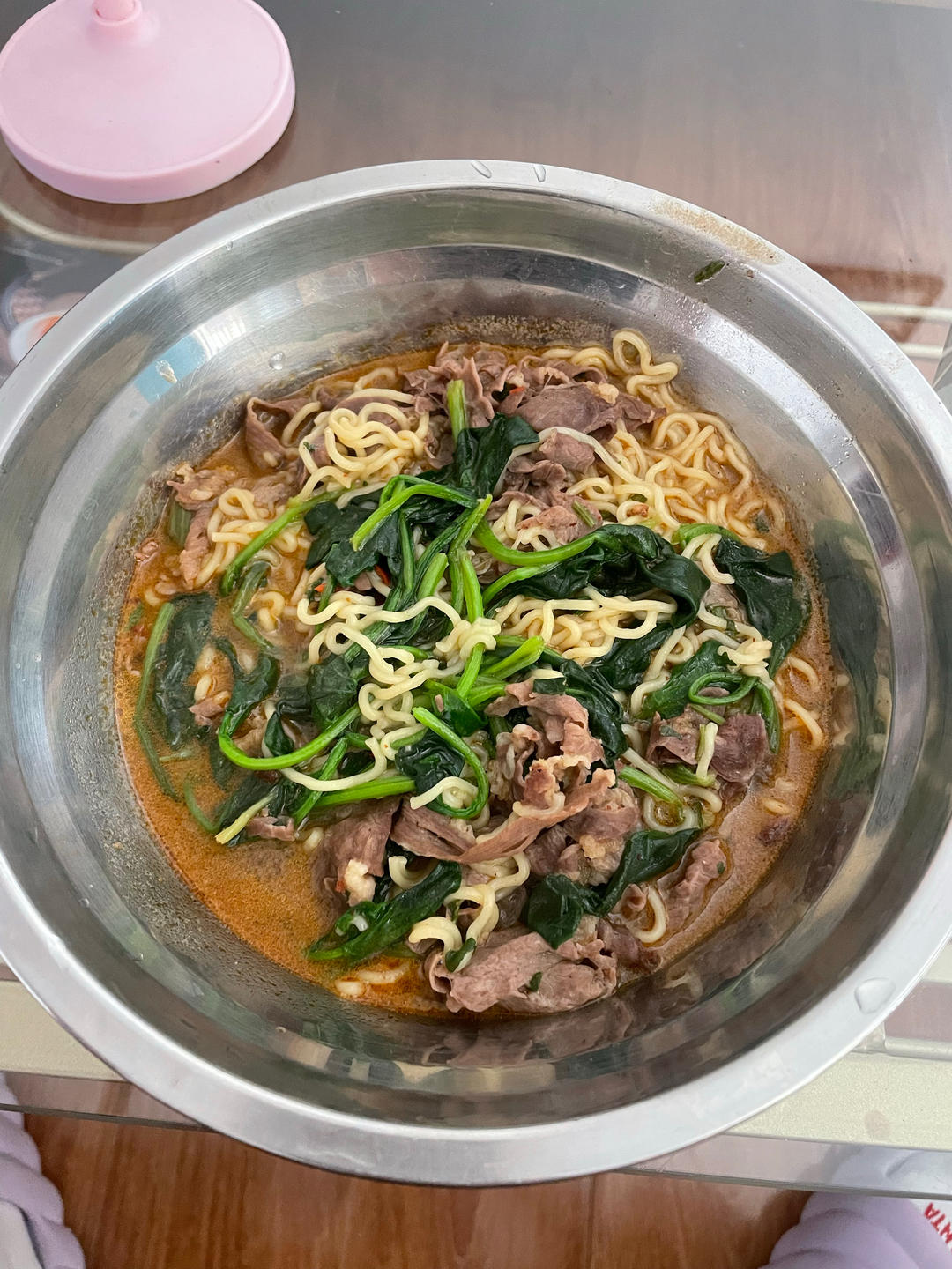 牛肉卷,菠菜方便面