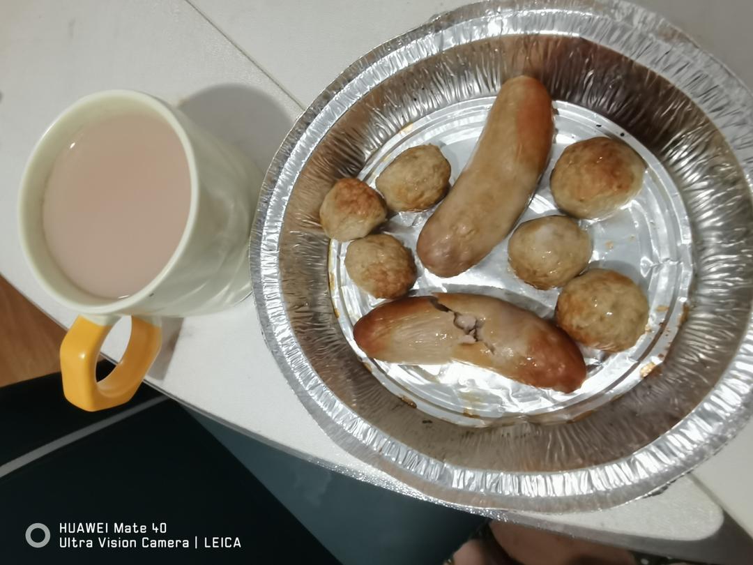 烤肠、烤猪肉丸+奶茶
