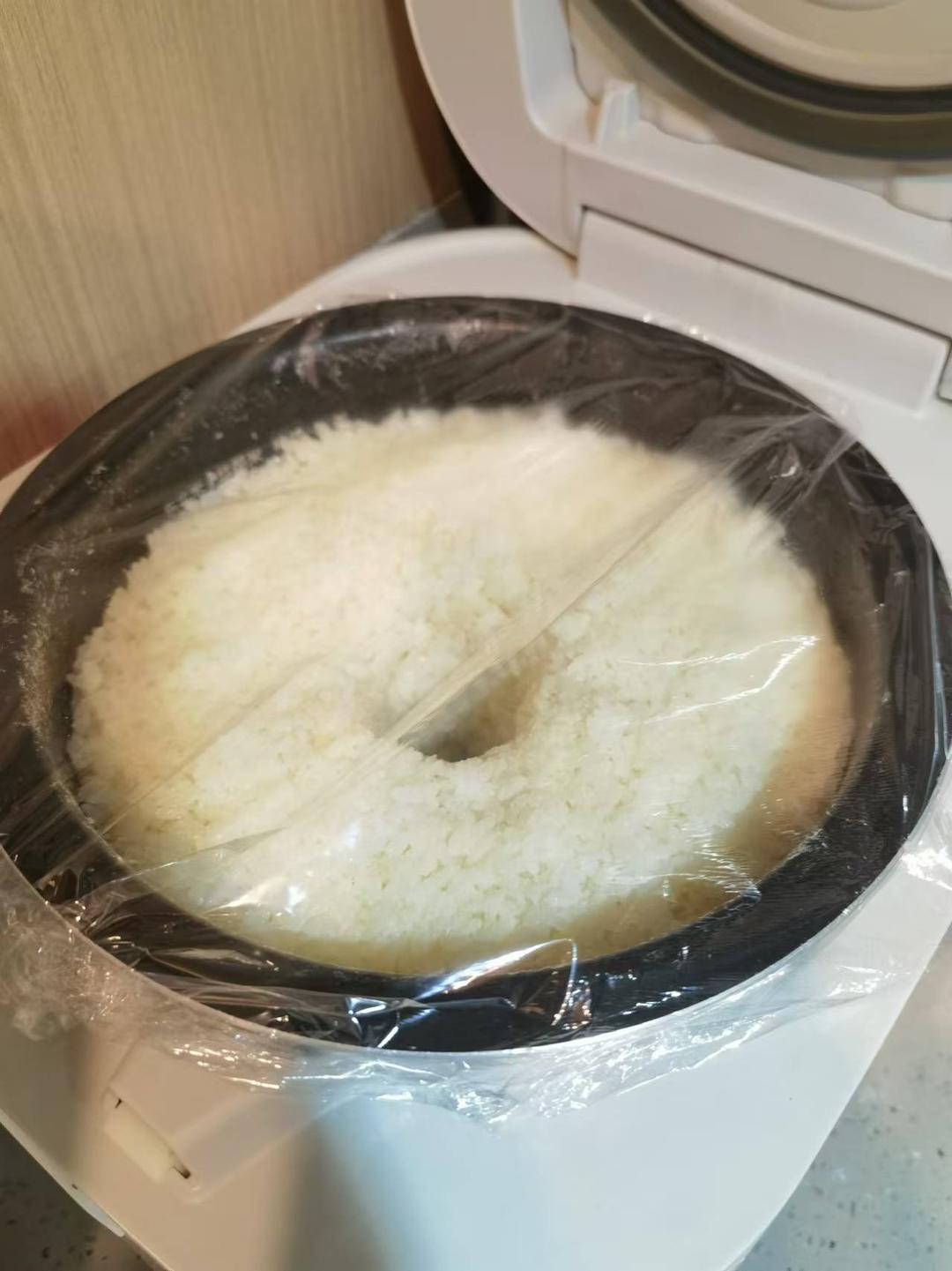 2、怕漏气把电饭锅外面都糊上保鲜膜。