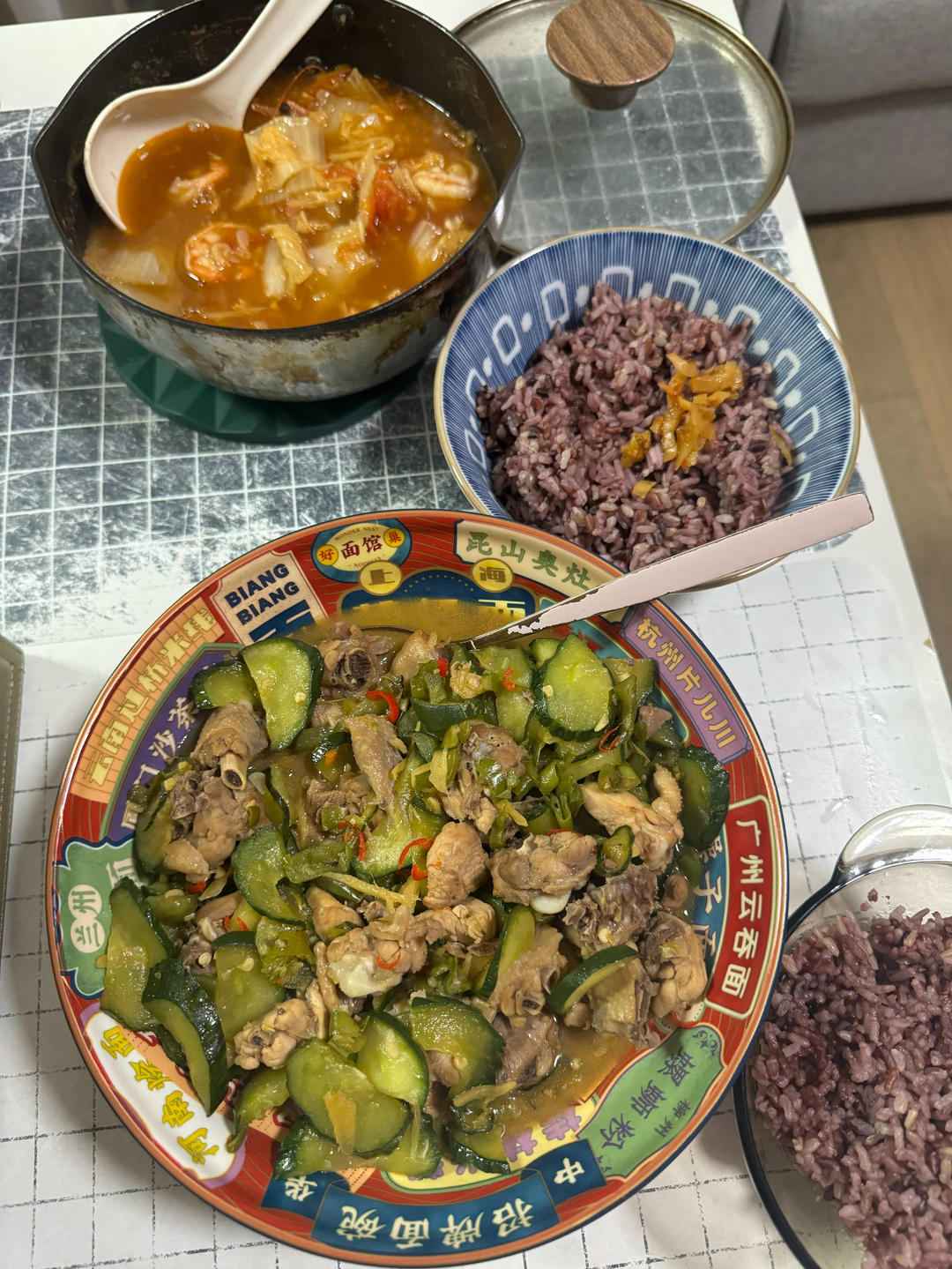 青瓜小炒鸡+番茄虾仁白菜煲