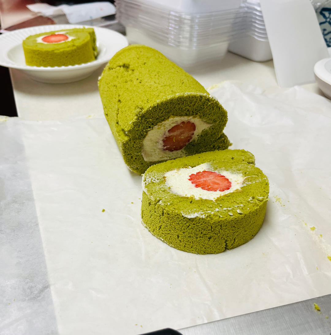 抹茶奶油草莓卷