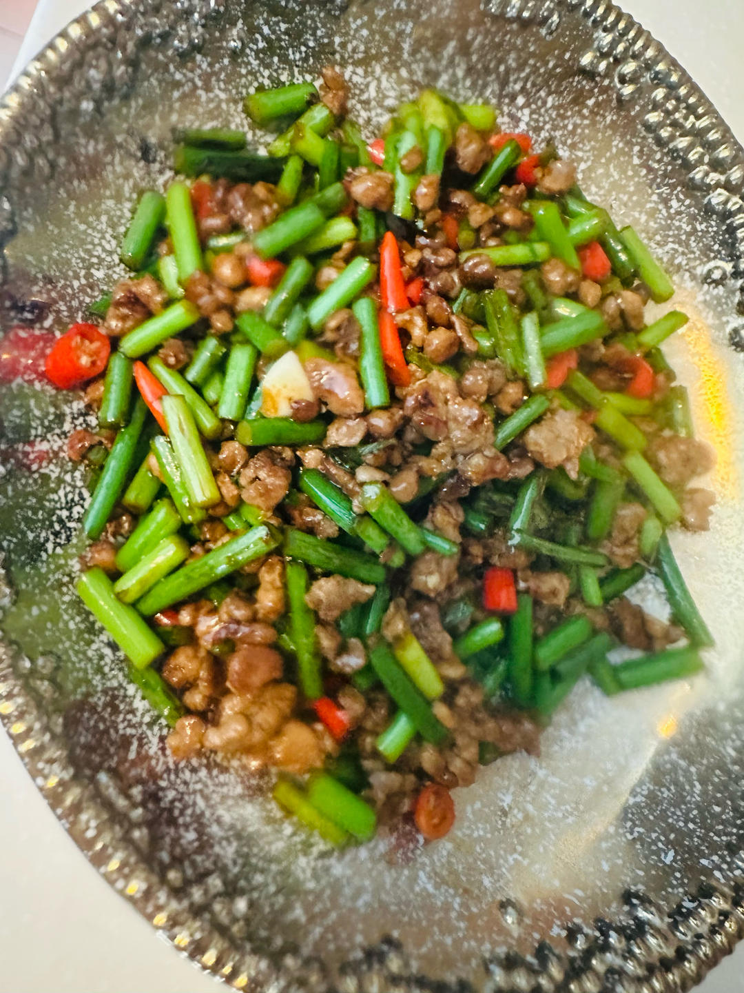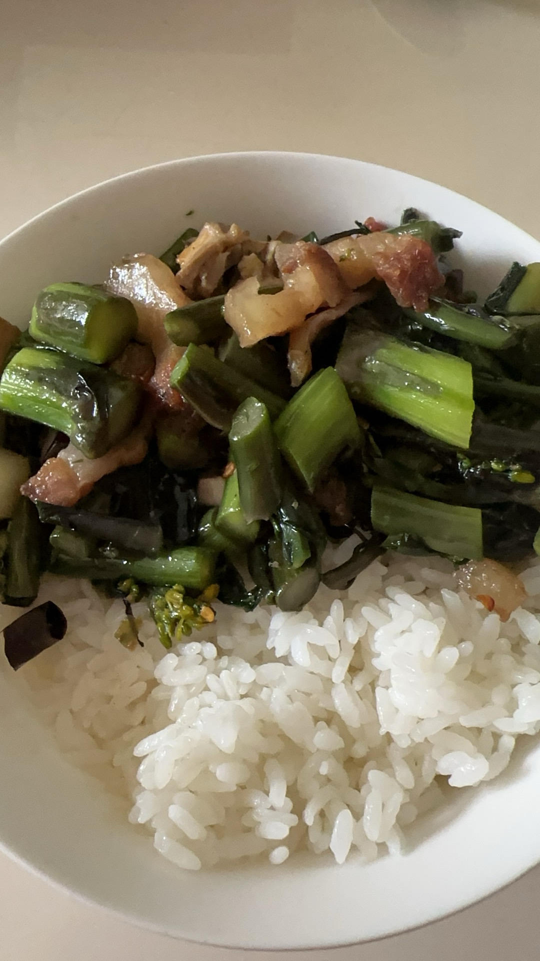 红油菜苔炒五花肉拌饭