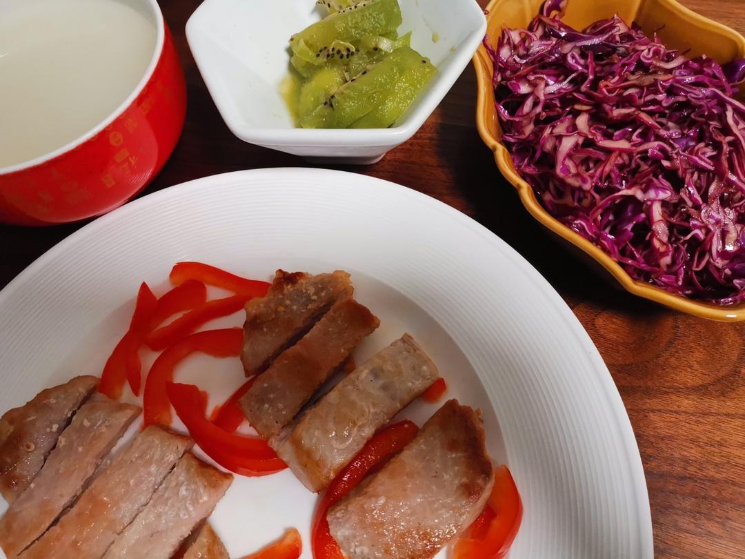 红椒猪排猕猴桃紫甘蓝稀饭