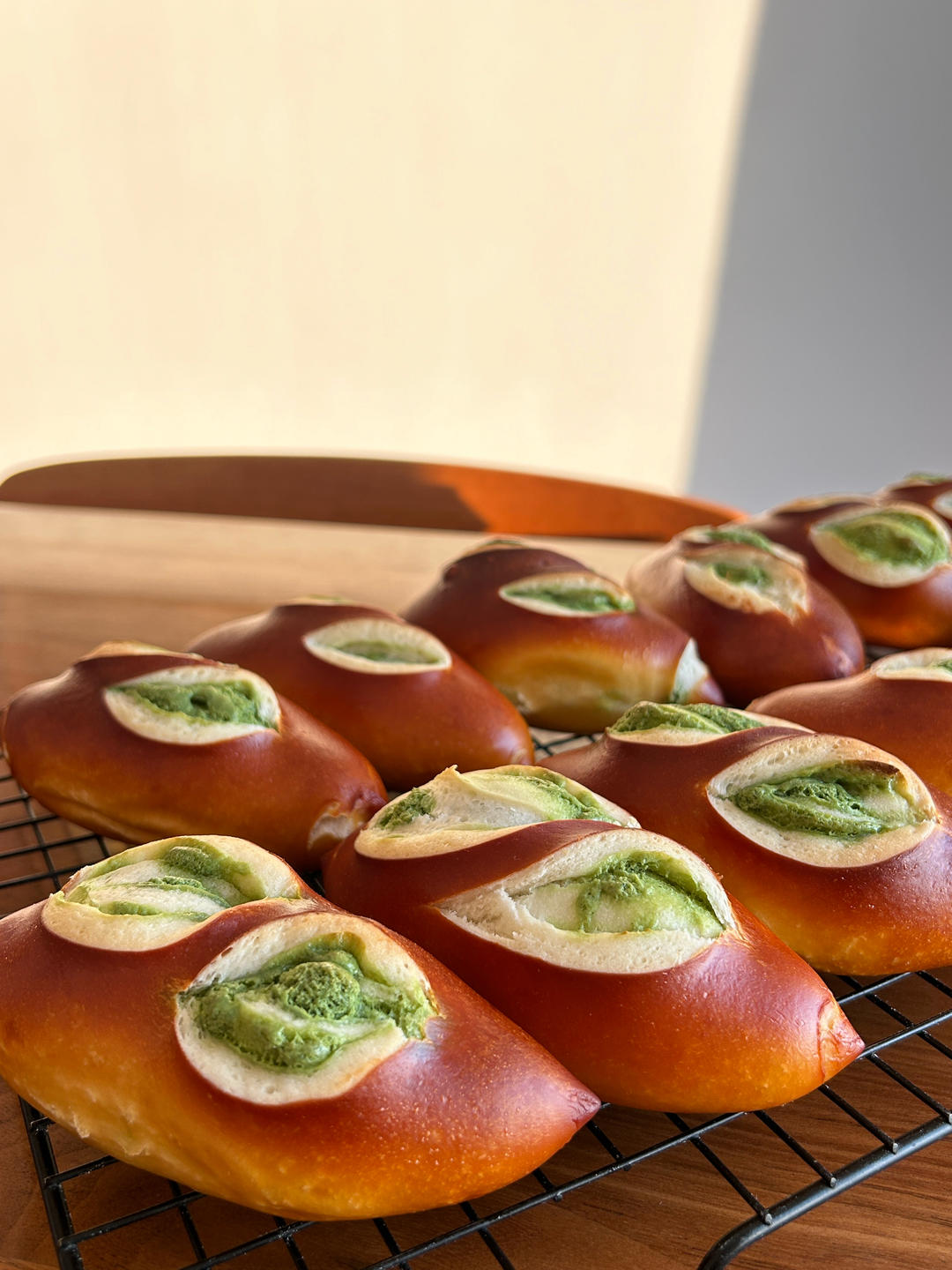 教大侄女做的抹茶奶酥碱水包
