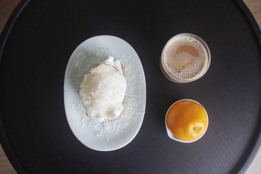 布拉塔芝士煎蛋开放三明治&耙耙柑&燕麦拿铁
