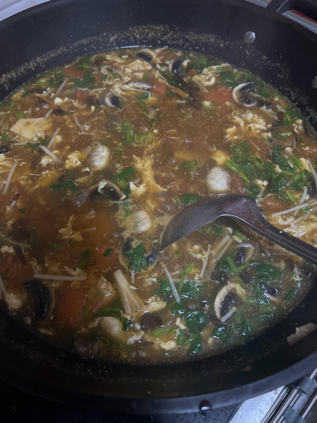 昨晚吃剩得饺子,这样加工适合冬天吃,酸辣酸辣,连汤带水吃完身上暖暖的。