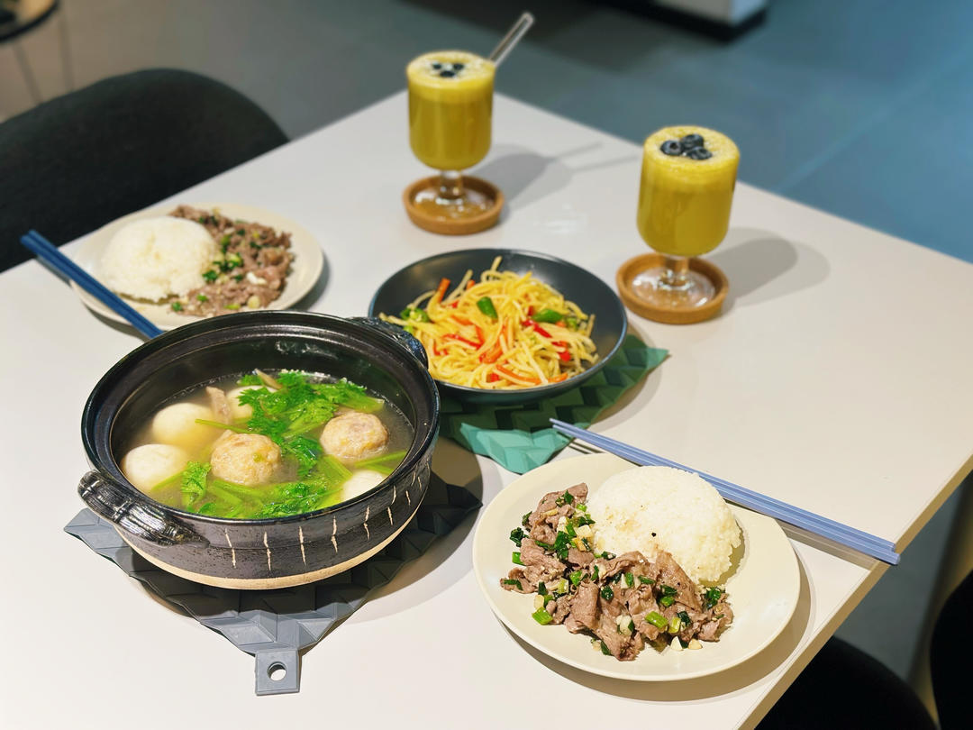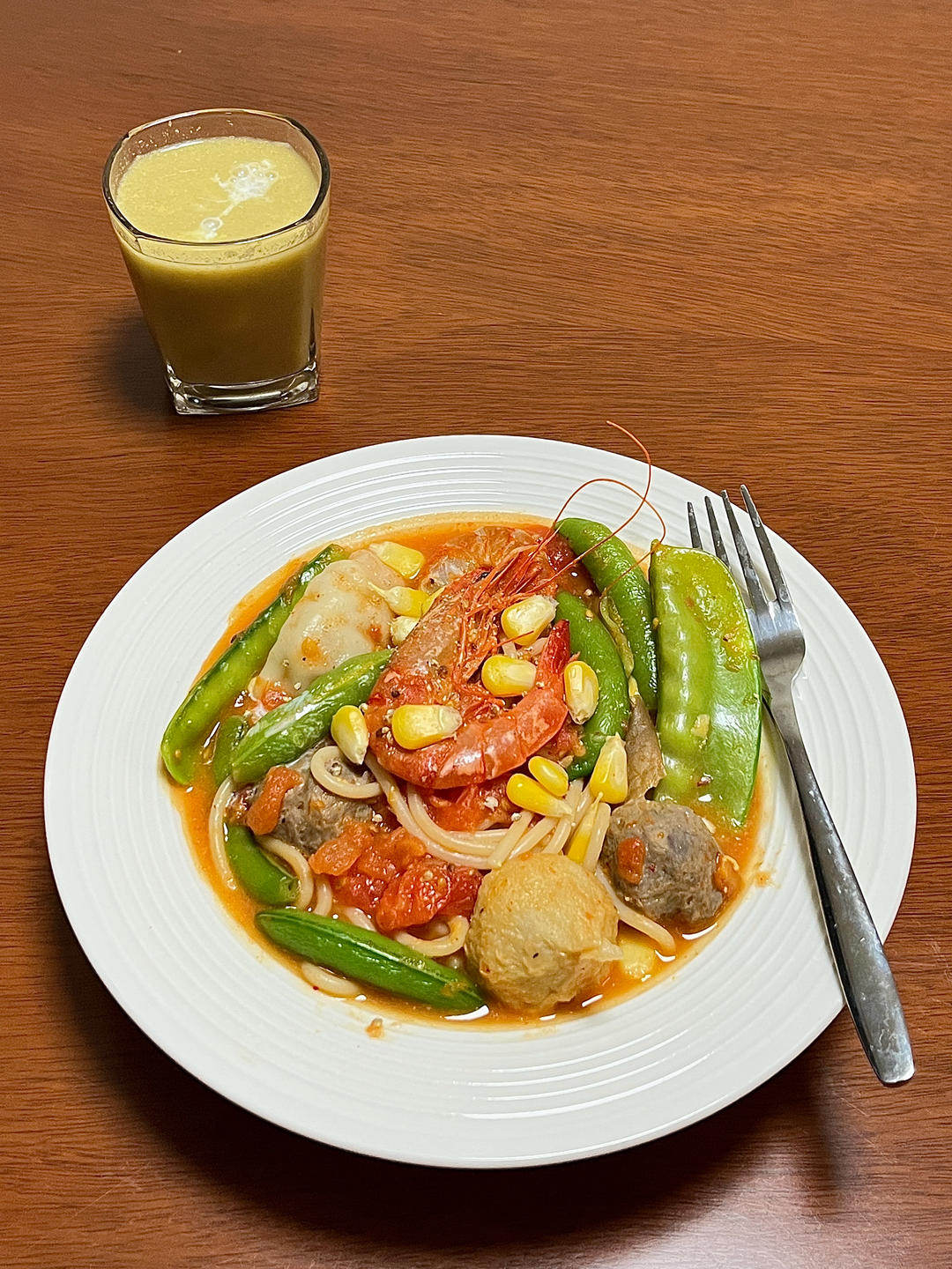 红绿灯肉丸一锅炖意面🍝➕玉米汁红薯