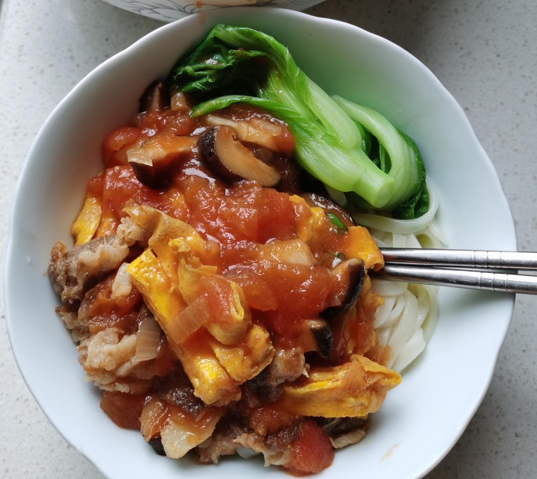 看看哪一碗面好吃,某人说不喜欢番茄酱,好吧,简单炒了一个洋葱番茄汤,青菜蛋饺面,自己盖浇面,要多少汤舀多少。我的面太好吃...