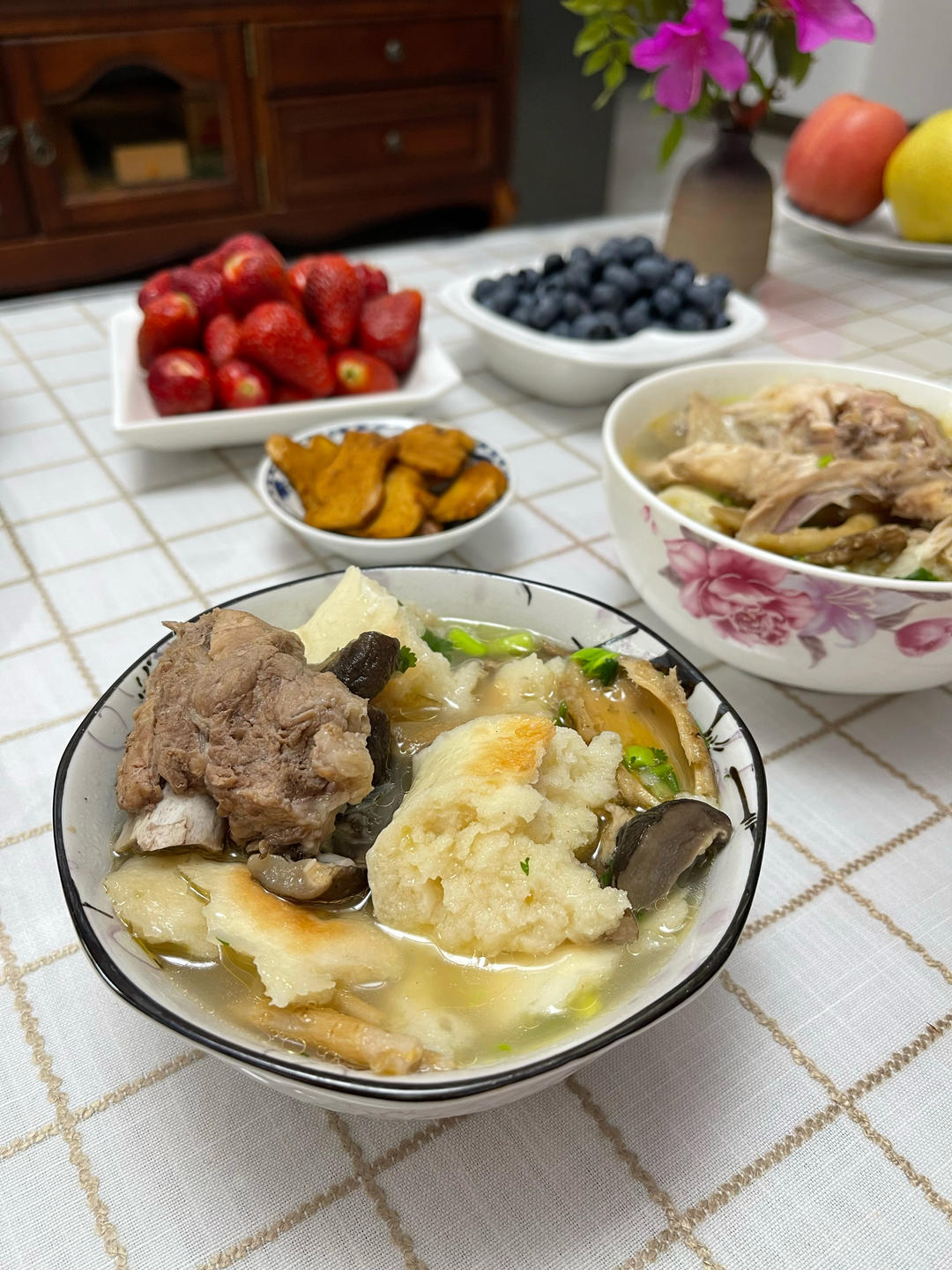 昨晚煮的鸡汤;早上逛完公园直接热热就可以吃了!