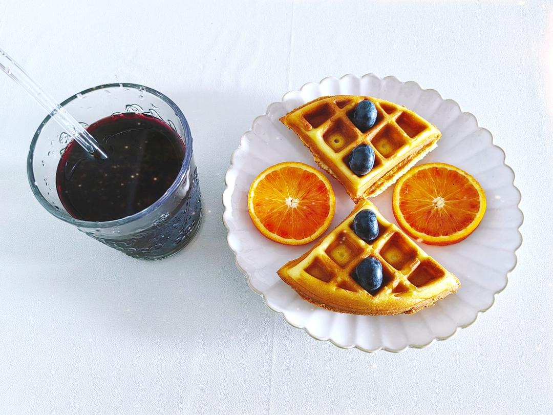 华夫饼,蓝莓血橙,桑葚汁