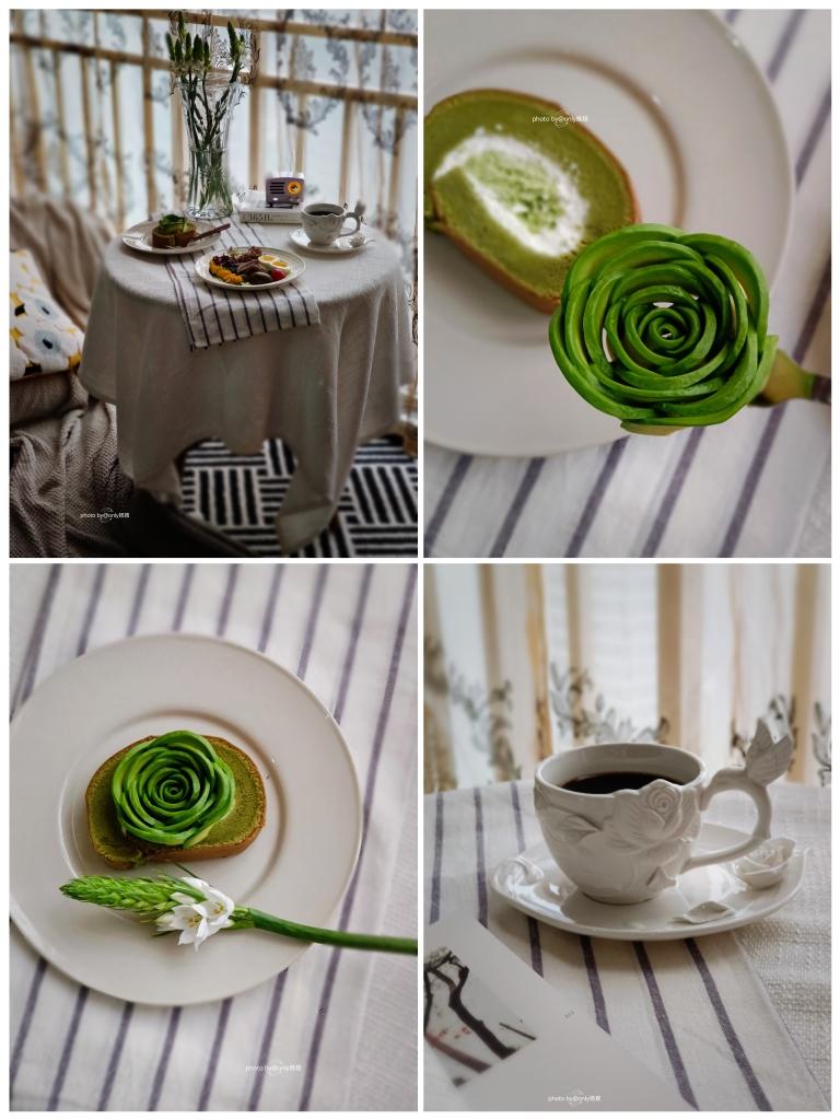 牛油果抹茶蛋卷+LA酱牛肩胛仔骨贝贝瓜蔬果拼盘+美式~