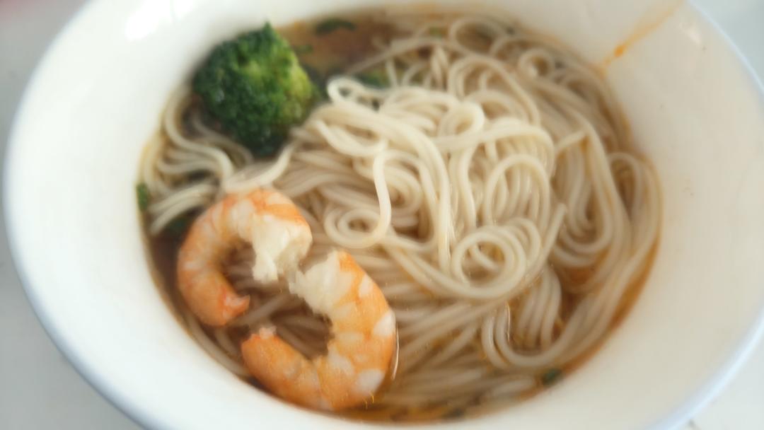 放了焯水的西蓝花和昨天没吃完的白灼虾虾仁,春天早起吃一碗,心情美美的。