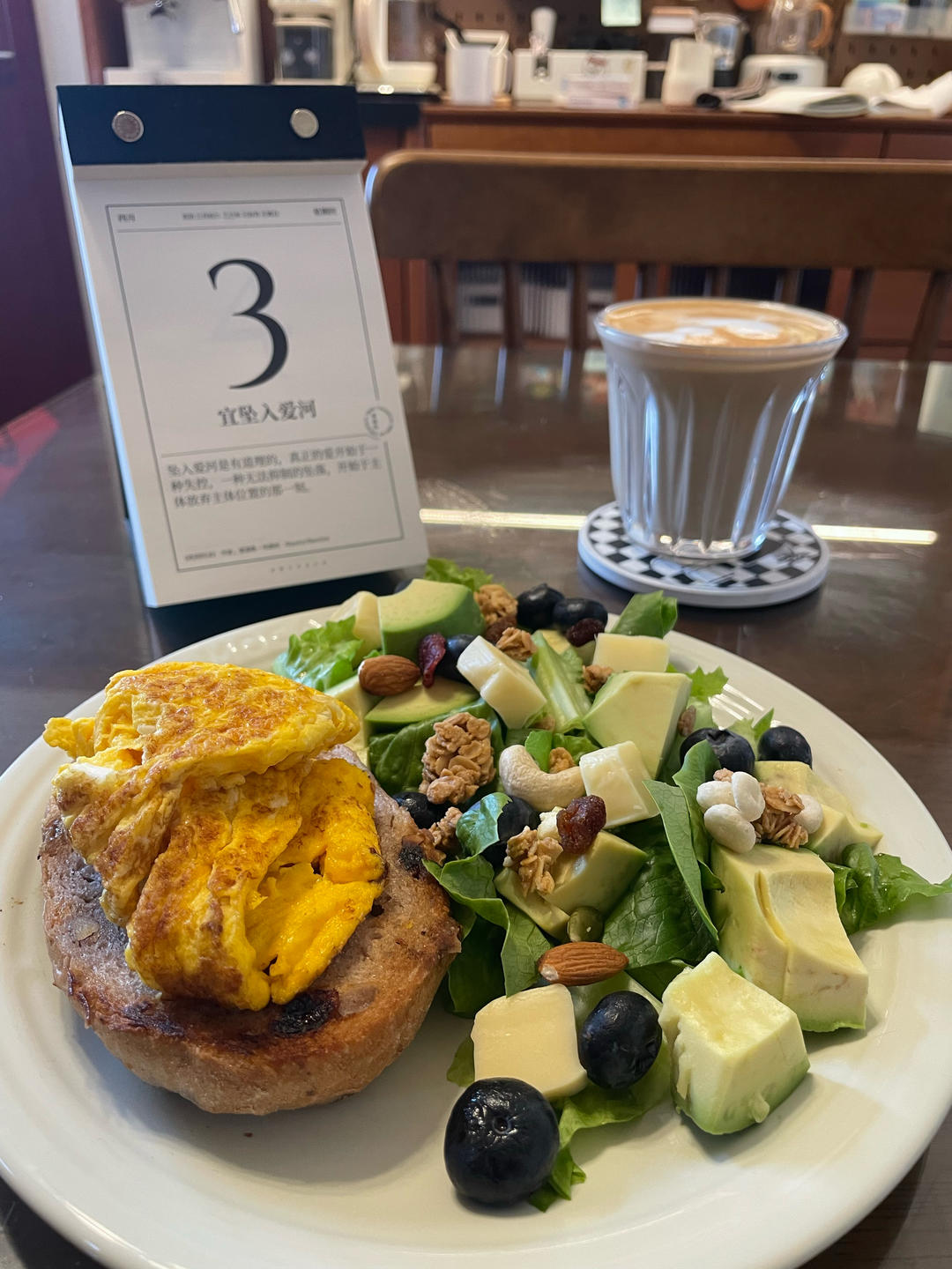 今日早餐:坚果欧宝、牛油果、拿铁