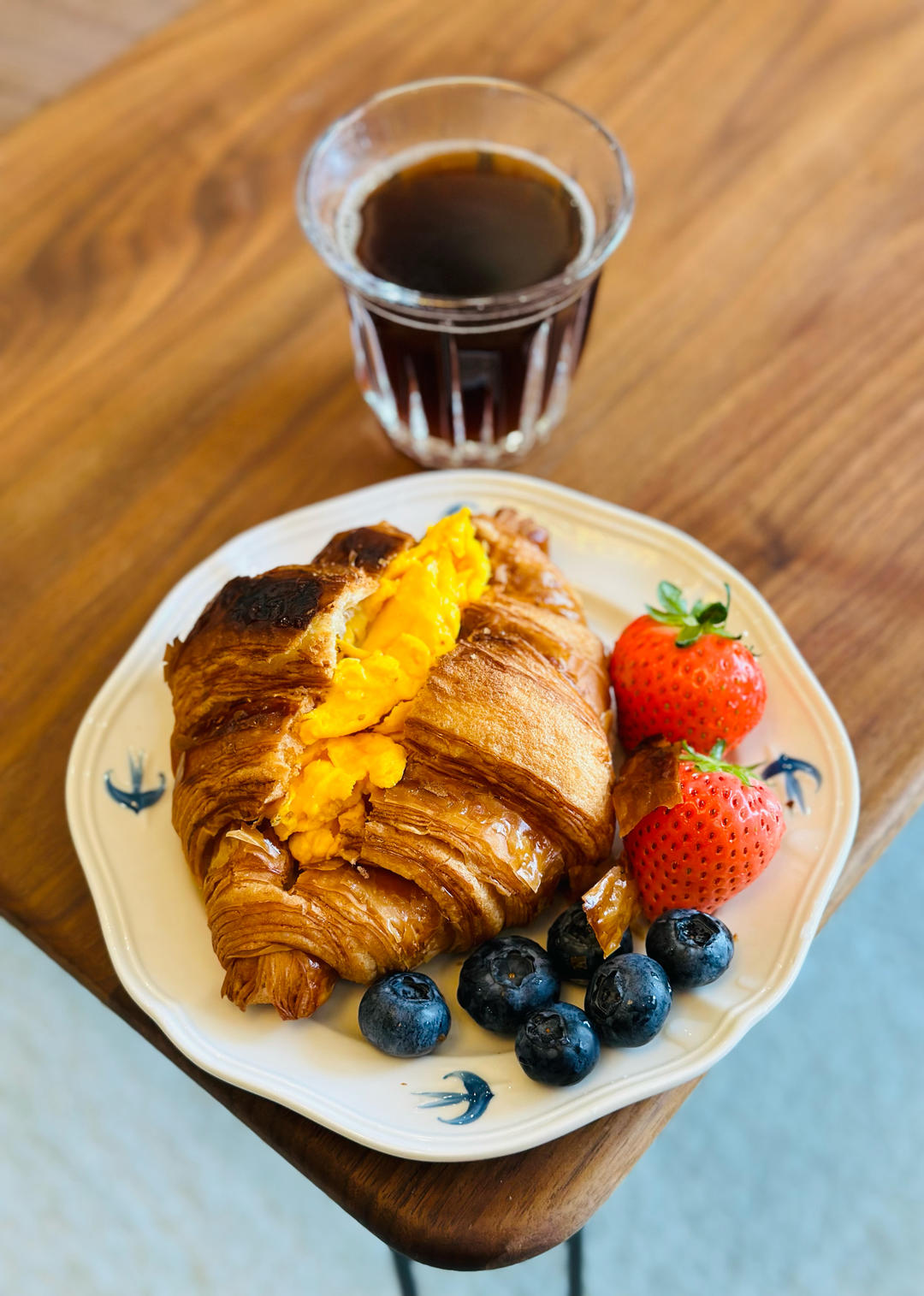 早餐:可颂,黑咖啡。白草莓太好吃啦