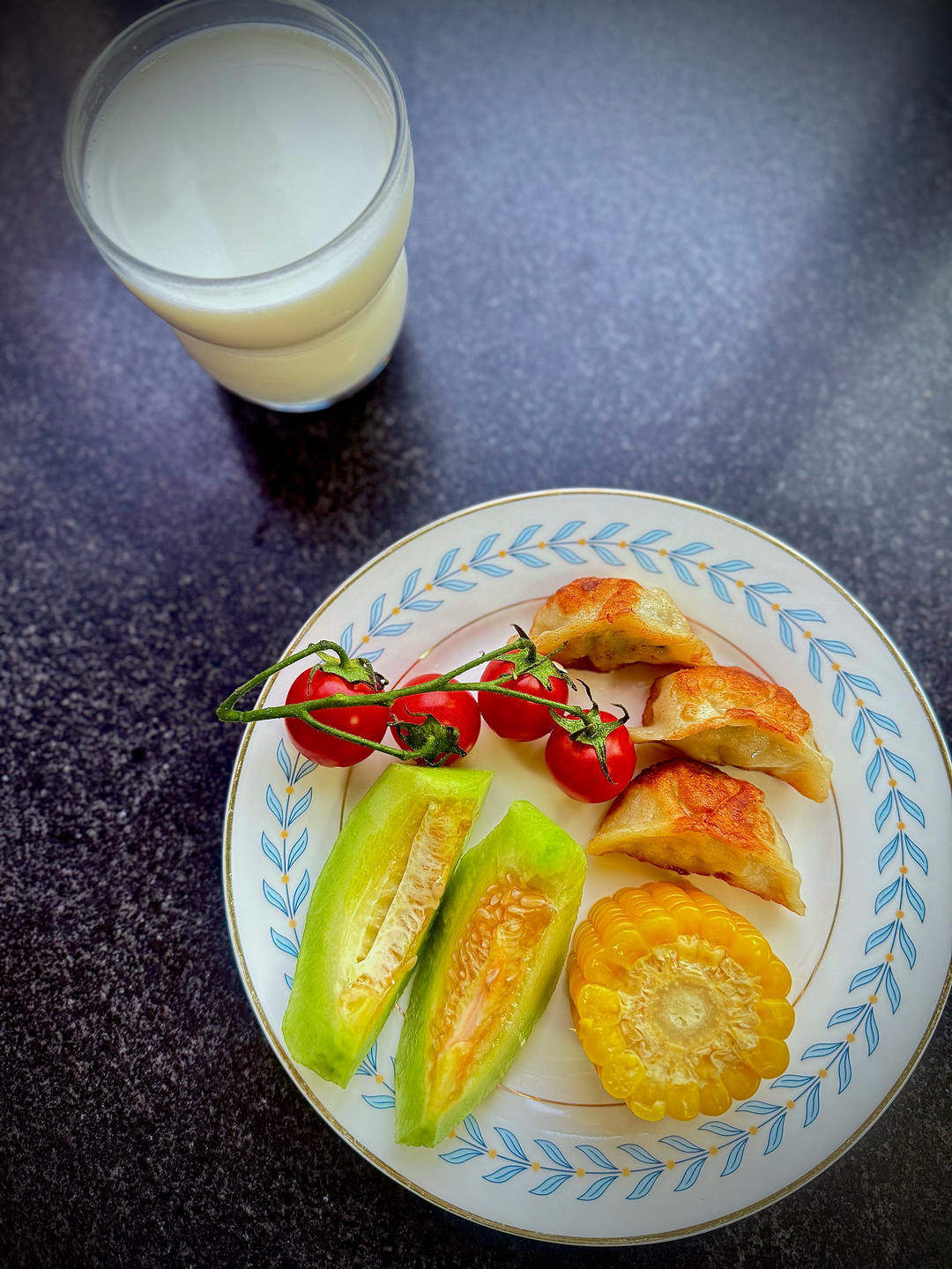 煎饺🥟➕玉米🌽➕甜瓜🍈➕小番茄🍅